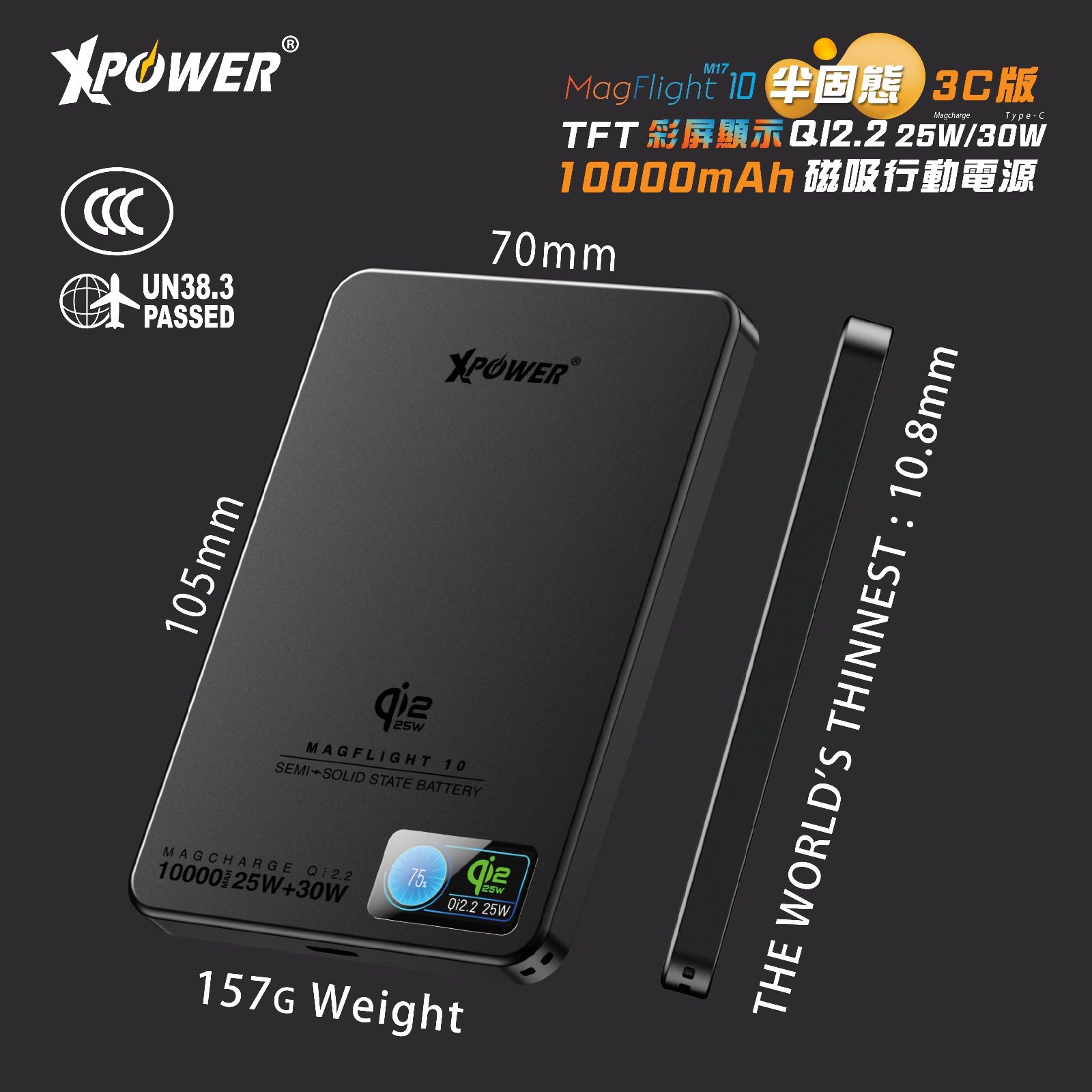 (3C認證) XPower MagFlight10 M17 半固態TFT彩屏顯示 QI2.2 25W/30W 10000mAh 磁吸行動電源
