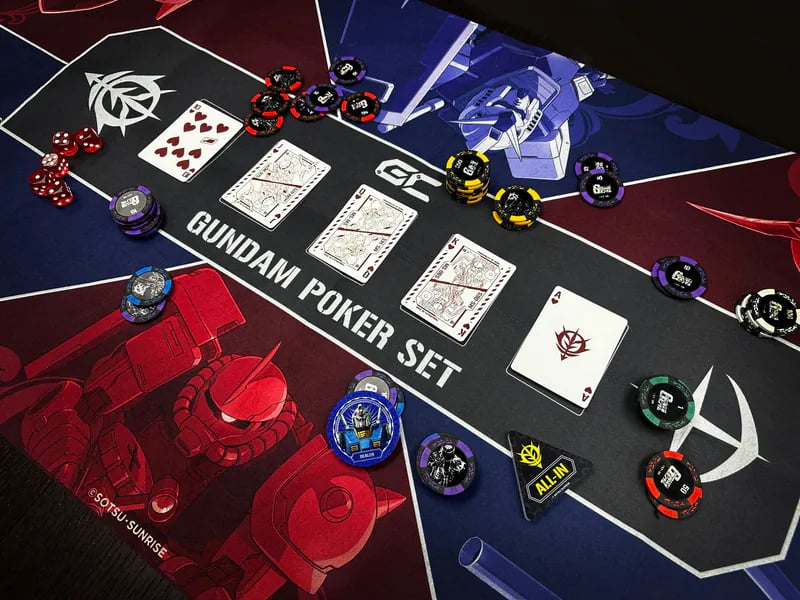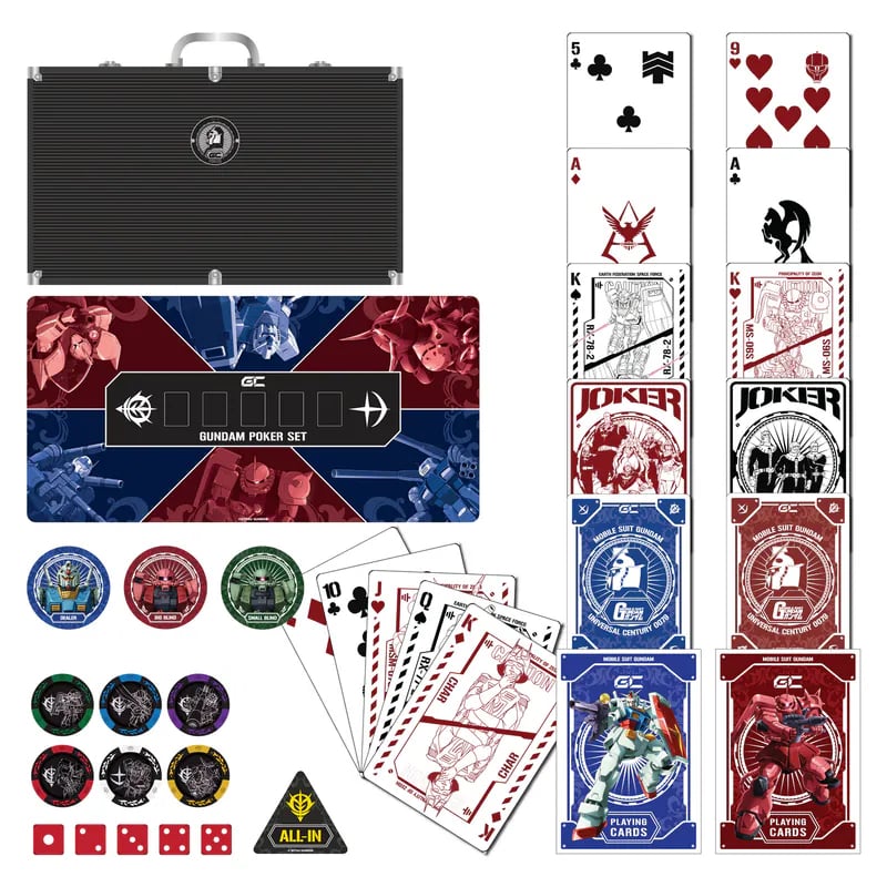 撲克牌: 兩副, 約 89 x 65mm 骰: 5 粒 籌碼: 300個, 直徑 40mm 綠色1碼X25個 藍色5碼X50個 紫色10碼X75個 紅色50碼X50個 白色100碼X75個 黃色500碼X25個 All-in 三角, 莊家, 大盲, 小盲 各1個 枱墊: 1200x600mm 專用箱: 約385 x 205 x 63mm 重量 6kg