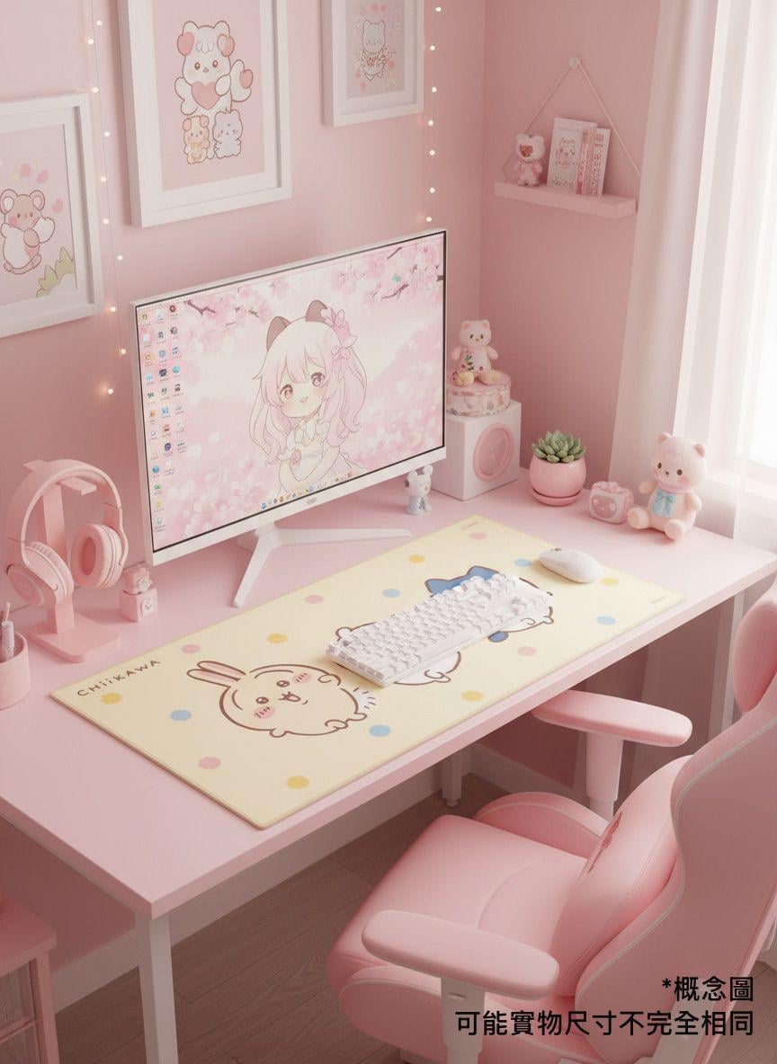 永橙🍊Chiikawa 新款 桌墊款滑鼠墊💞 尺寸: 80×40 cm 💛黃色 - 喜滋滋 🩷粉紅色- 朋友們