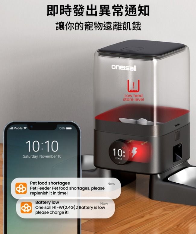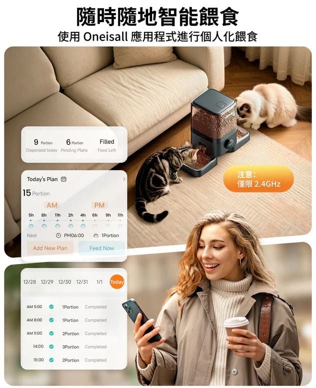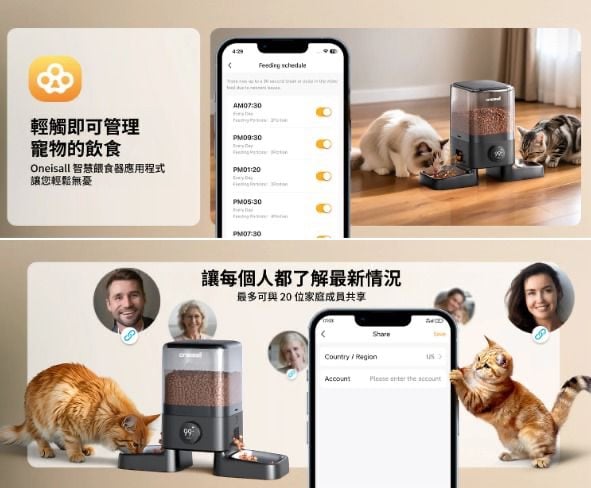 美國品牌Oneisall – 5L 雙碗無線智慧寵物餵食器