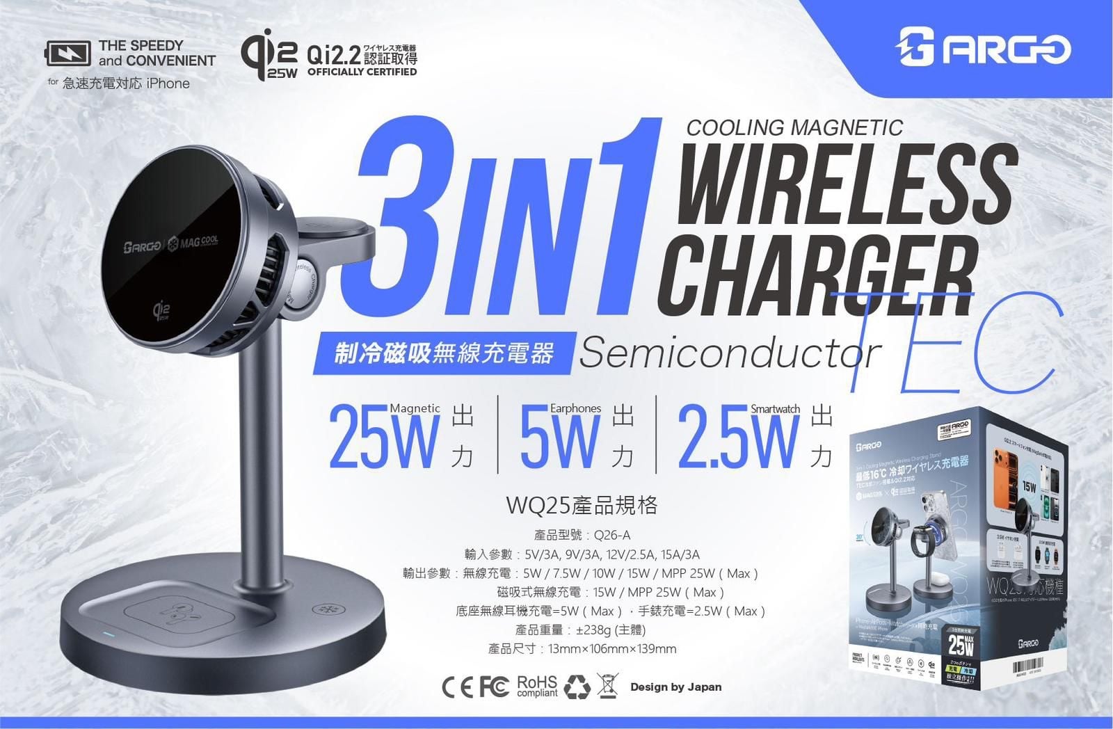 ARGO WQ25 3合1 製冷磁吸無線充電座 🔥⚡❄️