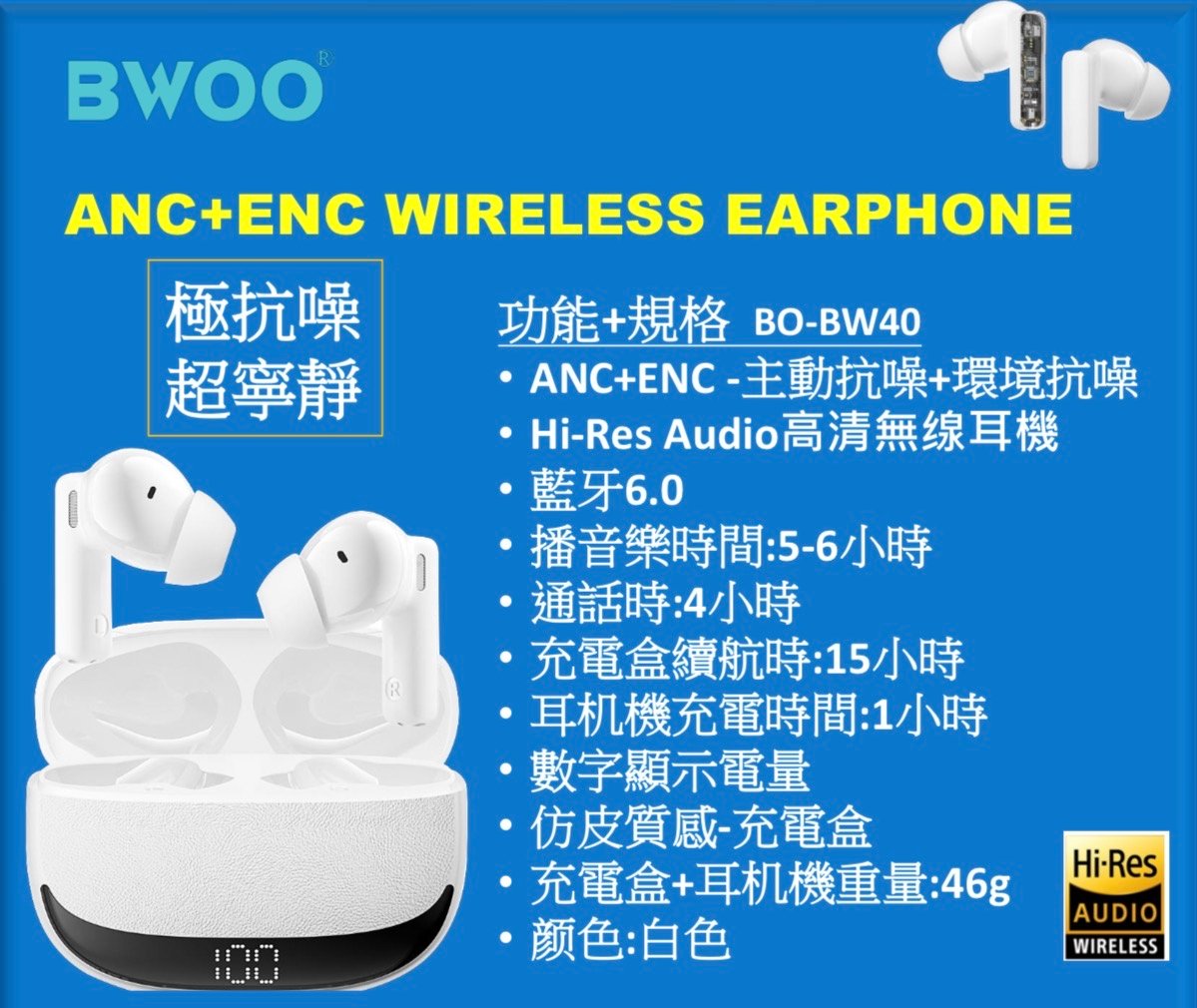 BWOO ANC+ENC WIRELESS EARPHONE BO-BW40