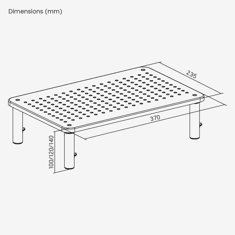 Brateck Metal Monitor Laptop Stand Riser - STB-081 Scuff-resistant powder coat paint Open design for better air ventilation Increased storage room under desktop Non-skid rubber pads, avoid scratches or scuffs 3 Height setting : 100/120/140 mm [AC-STB081]
