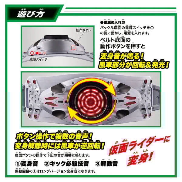 《新幪面超人》推出 DX新幪面超人變身腰帶! 包含各種音效和光效!需要 3 枚 AA 電池供電。 ■ 商品內容 - バックル - ベルト帯(前面) - ベルト帯 L R 各 1 - サイドバックル L R 各1 - ベルト留め x 2 - ベルト留め装飾パーツ * 不包含"商品內容"以外的物品。 - DX新2號變身腰帶 (另售)