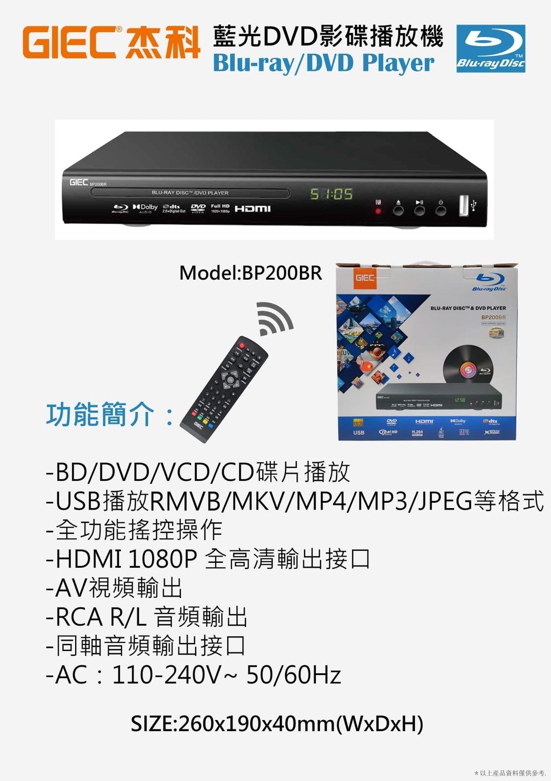 GIEC 杰科BP200BR 全區碼藍光DVD影碟播放機