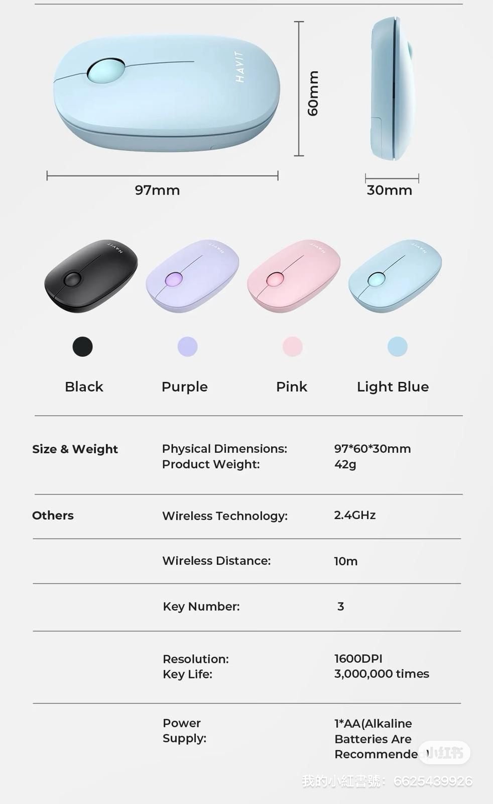 * 便攜設計: 設計緊湊、時尚且輕巧 (約 50 克),便於存放和攜帶,迷你接收器可收納在滑鼠本體內。