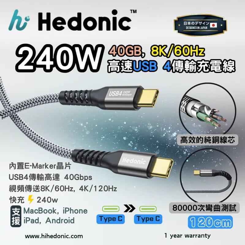 Hedonic C to C PD3.1 240w USB4 *40Gbps* 充電傳輸線