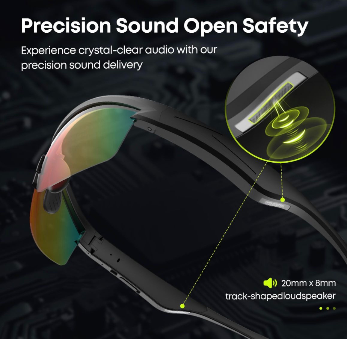 Langsdom AirNova BH01 智能音頻跑步眼鏡 Model: BH01 一年保養 顏色 🌑 黑鏡片 🌈藍綠幻彩鏡片 ☀️定向傳音 20mm x 8mm跑道型喇叭,實現精準定向傳聲。清晰接收環境聲音,運動安全更自在 ☀️智能音響互動 電腦/手機無鏠切換,連接自由,操作更流暢 ☀️CD級高清音質 雙立體聲揚聲器 + ACC高清音訊解碼技術,呈現CD級專業音質享受 ☀️藍牙5.3 - 超長續航 充電2小時,可用10小時超長續航,電池容量120mAh ☀️IP55級防塵防水 有效阻隔汗水與雨水,可直接沖洗 沖洗時請避開揚聲器位置 ☀️UV400防曬鏡片 阻隔紫外線與強光,直視太陽無壓力,享受戶外樂趣