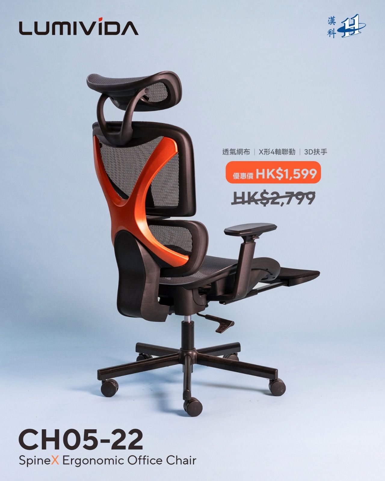 返工坐足8個鐘,喺屋企繼續坐 — 但可以坐得更加舒服! Lumivida SpineX 人體工學網椅 X 形4軸支撐架仲有腳凳可以晾腳,令你坐得更爽、更挺、更有支撐!