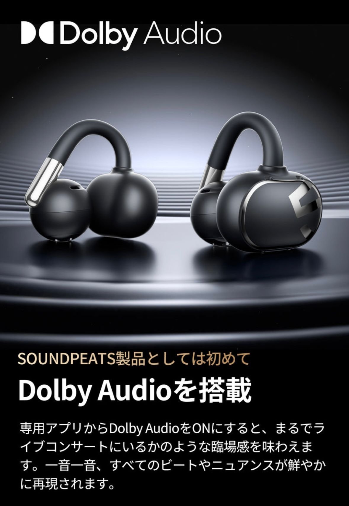 Soundpeats 首款耳夾式藍牙耳機 🎬 支援Dolby Audio (杜比音效) 榮獲🇯🇵日本 VGP大賞 2025 性價比大獎🏆 榮獲🇯🇵日本 VGP大賞金獎🏆 💽 10.8mm 雙磁鐵驅動單元🎧搭配 PU+LCP 複合振膜 💽 支援杜比音效和 360 度空間環繞音效📶強調臨場感、低頻震撼 💽 專利 C 型雙向防風噪設計🌪️防風噪能力提升 25% 💽 採用符合人體工學的曲線🌝舒適貼合耳朵,長時間配戴也不壓迫 💽 開放式聆聽 🛜 讓使用者在聽音樂的同時能清楚感知周圍聲音 💽 配合 AI 智能通話降噪📞戶外通話更清晰 💽 定向傳音減少漏音🌀3D 立體聲更強 💽 IPX5 防汗水防塵 💽 支援Soundpeats APP 💽 耳機本體一次充電可使用約 8 小時➡️搭配充電盒可達總續航 22~32 小時 💽 支援 15 分鐘USB-C 快速充電可用約 3 小時 💽 單邊僅重約 5g 💽 港澳代理一年保養 Model: Soundpeats Clip 1 顏色🌑黑色