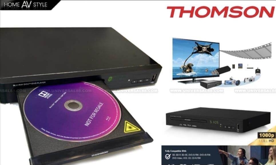 Thomson BD2612 Blu-Ray DVD Player 💿額定電壓: 110-220V ~ 50/60Hz 💿待機模式額定功率: < 0.5W 💿電源線長度: 1.2 米 💿產品尺寸: W260 x D193 x H42 毫米 💿彩盒尺寸: W294 x D85x H287 毫米 💿功能特點:藍光碟片全高清1080P 播放 💿可選擇720P / 1080I / 1080P 解像度 💿HDMI 輸出帶來高清視聽娛樂 💿USB 輸入可在電視上播放媒體 💿支援杜比TRUE HD / DTS 解碼以增強音頻 💿全兼容BD、BD-R、BD-RE、DVD-R/RW、DVD+R/RW、DVD-Video、VCD、CD、CD-R/RW、MPEG4、JPEG 💿配件:遙控器(不包電池)、火牛、HDMI 線、說明書