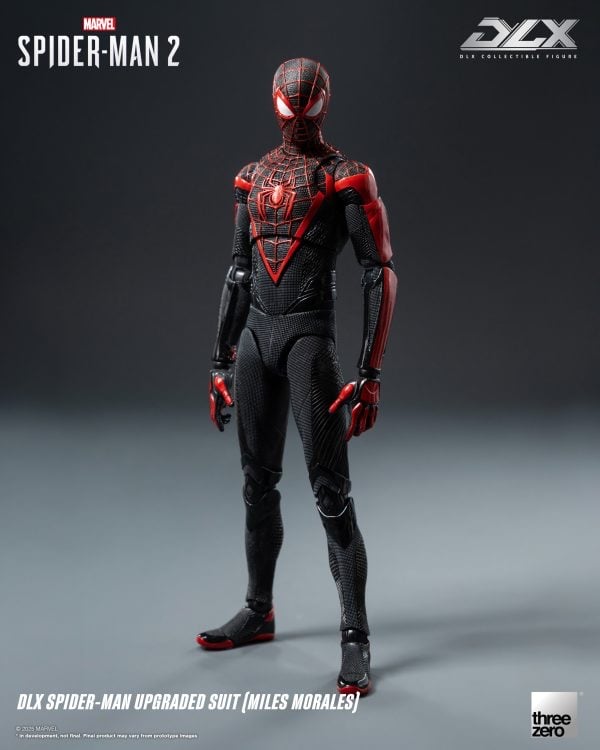 threezero隆重呈獻來自電子遊戲《漫威蜘蛛俠2》的另一位蜘蛛俠── DLX 蜘蛛俠升級戰衣(麥爾斯·摩拉斯)!作為新一代蜘蛛俠的麥爾斯披上新戰衣,與亦師亦友的彼得共同守護漫威宇宙紐約。 DLX 蜘蛛俠升級戰衣(麥爾斯·摩拉斯)身高約15.7厘米,採用threezero獨特設計的合金配搭工程塑料骨架,具備約39個可動關節;部分關節部件採用合金製成,擁有高可動及耐用度。人偶身上帶有飽滿而立體的肌肉線條,貼身戰衣亦透過不同形式的雕刻布紋呈現遊戲中豐富的布紋材質。黑色的戰衣輔以紅色的紋路及立體網格花紋,胸口和背上的巨大紅色蛛紋亦得以重現,細膩還原《漫威蜘蛛俠2》中的形象外觀。 麥爾斯的升級戰衣配有附有兩對可互換眼睛、一部手提電話及多種手型和蜘蛛絲,能夠靈活擺出不同的造型和攻擊架勢。更附帶一對電流發射特效配件和一對閃電拳特效配件,展現麥爾斯使出他獨有的生物電毒液轟炸攻擊時的震撼威力!