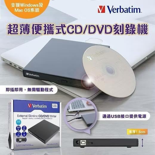 Verbatim 超薄便攜式CD/DVD刻錄機(USB 2.0) 型號:66817