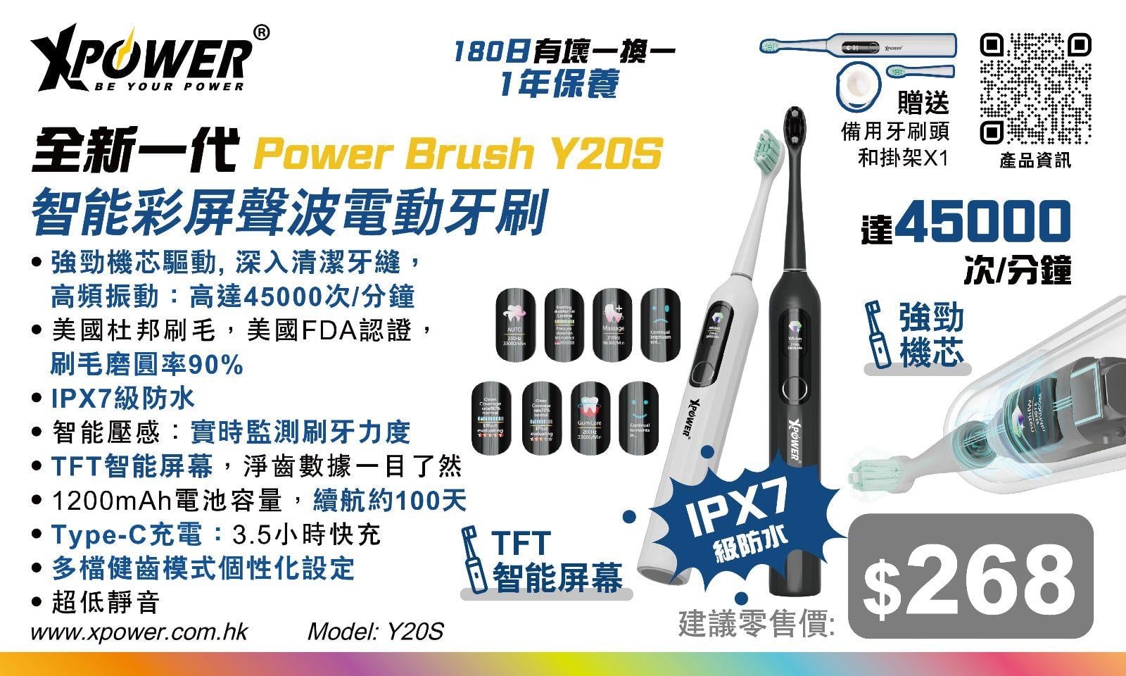 XPower 全新一代 Power Brush Y20S 智能彩屏聲波電動牙刷