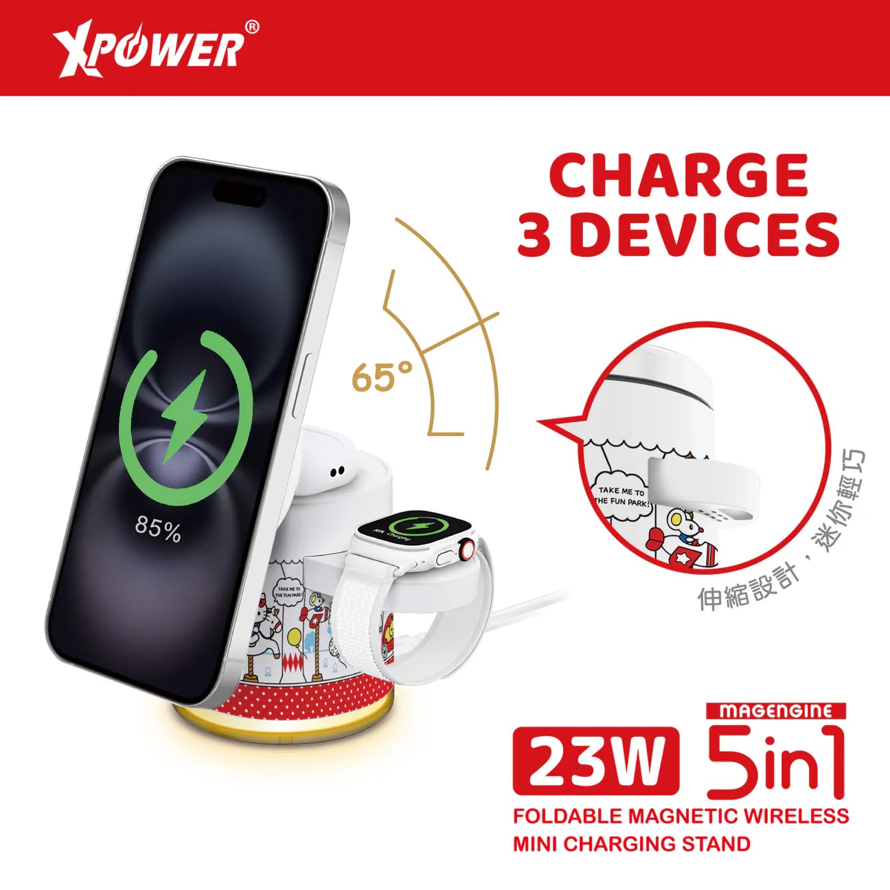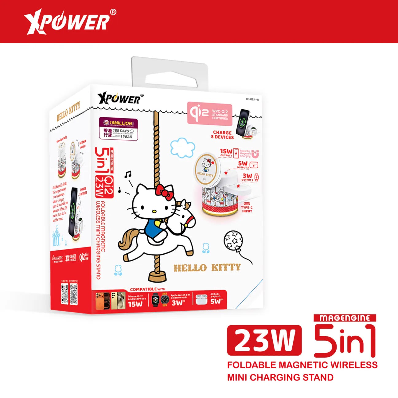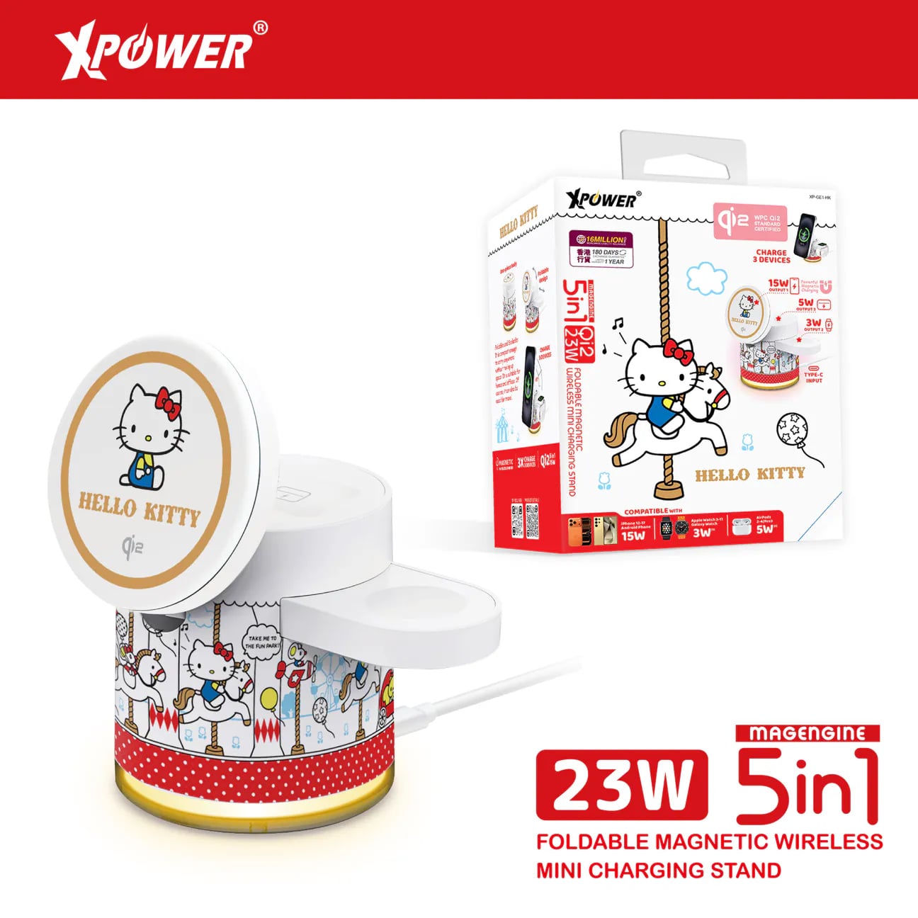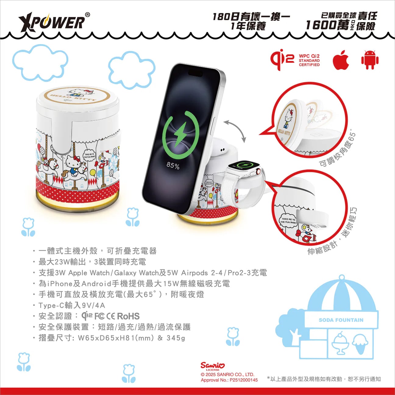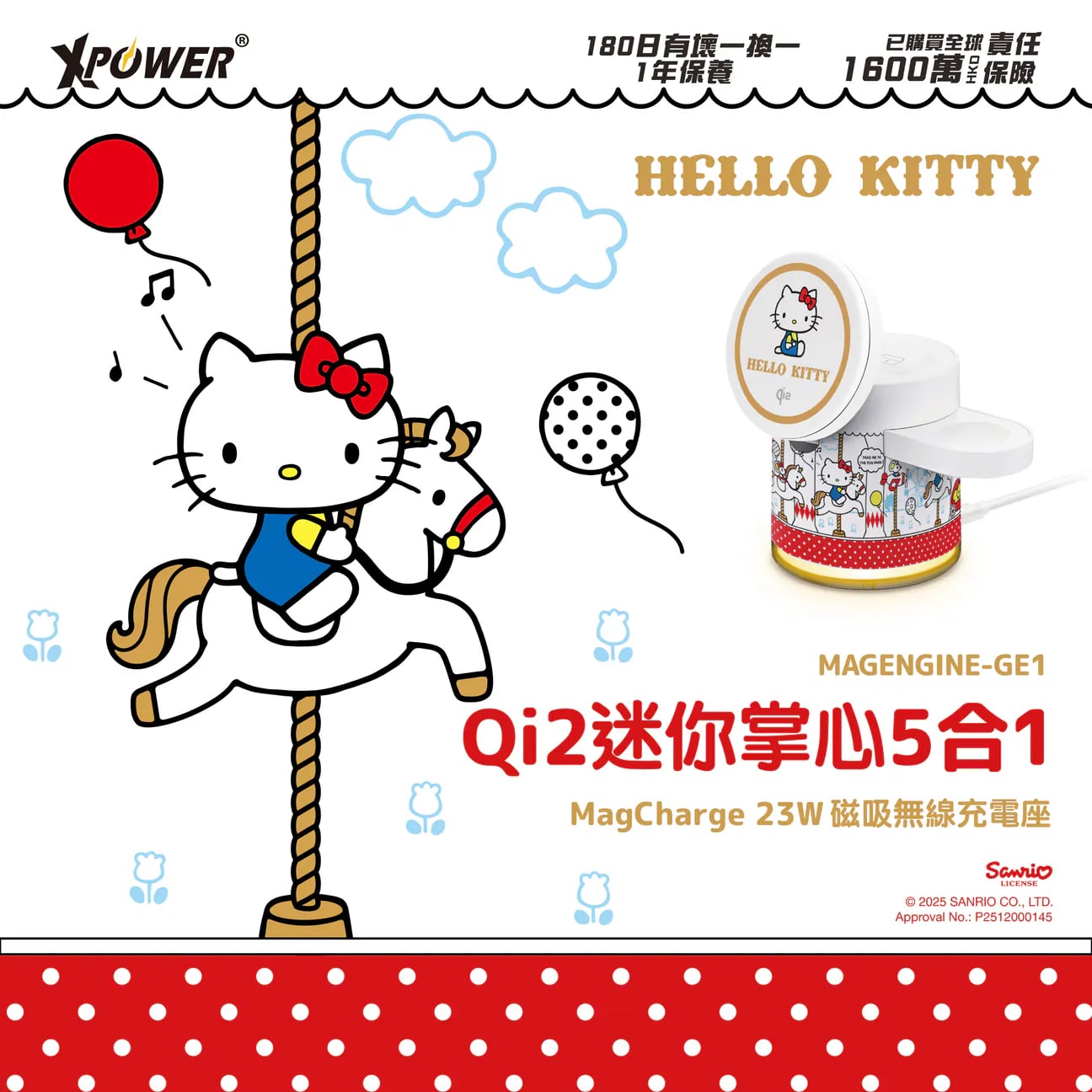 XPower x Sanrio Hello Kitty GE1 Qi2迷你掌心5合1 MagCharge 15W磁吸無線充電座